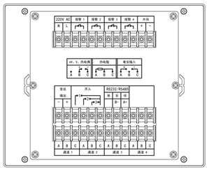 六:4路彩屏高速溫濕度記錄儀外型尺寸與端子圖