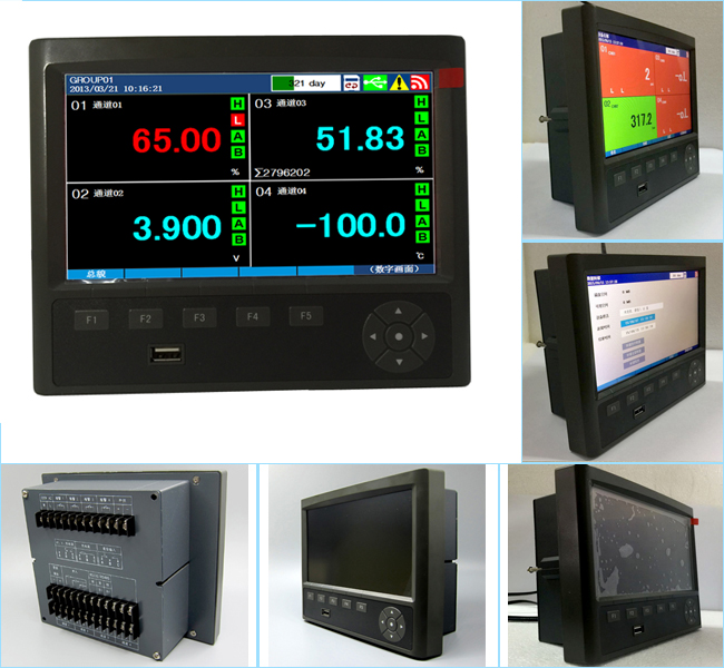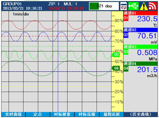 總顯畫面(4個路時時測量值顯示在同一屏幕)對每個組的測量數(shù)據(jù)可以進行實時曲線顯示、數(shù)字顯示和棒圖顯示?偯伯嬅、數(shù)字畫面、棒圖畫面、實時曲線畫面、歷史曲線畫面、報警信息畫面、斷電記錄畫面、繼電器狀態(tài)畫面、時報畫面、8時班報畫面、12時班報畫面、日累積報表畫面、月累積報表畫面、數(shù)據(jù)轉(zhuǎn)儲畫面、數(shù)據(jù)打印畫面等。