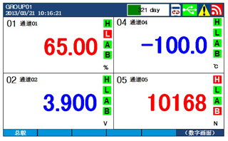 數(shù)字畫面除顯示4路測量值外,可以顯示設(shè)備名稱