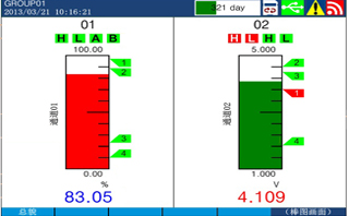 顯示有通道位號、工業(yè)單位及報警狀態(tài) |