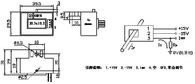 1、錯誤的接線可能導致傳感器損壞。傳感器通電后,當被測電流從傳感器箭頭方向穿過,即可在輸出端測得同相電流值。