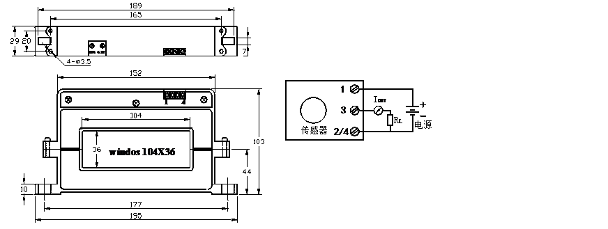 引線輸出: 紅,+24V黃,IOUT黑,0V(電源地)