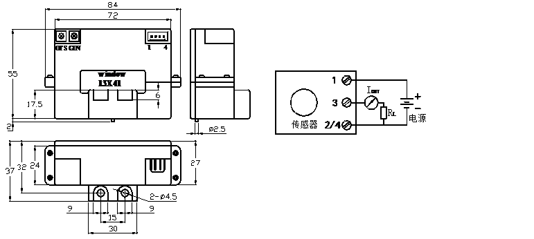 引線輸出: 紅,+24V黃,IOUT黑,0V(電源地)
