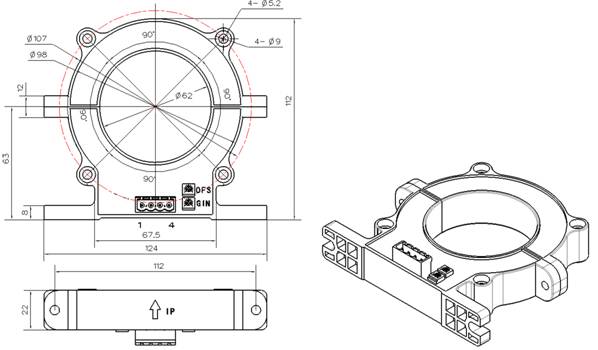 測(cè)量0-6000Aac輸出4-20mAdc,孔 徑62mm,電源DC24V