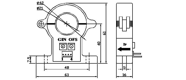 測量0-500A電流輸出4V信號,孔徑21mm,電源±12~±15V