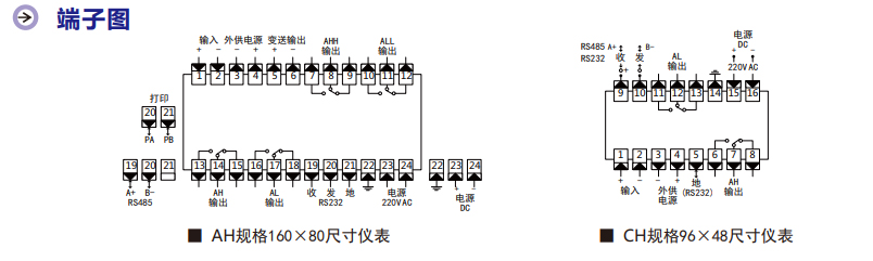 4、可選配1-4點報警輸出。包括測量值上限、測量值下限、偏差上限、偏差下限、偏差絕對值五種基本報警方式和與五種基本報警方式對應的