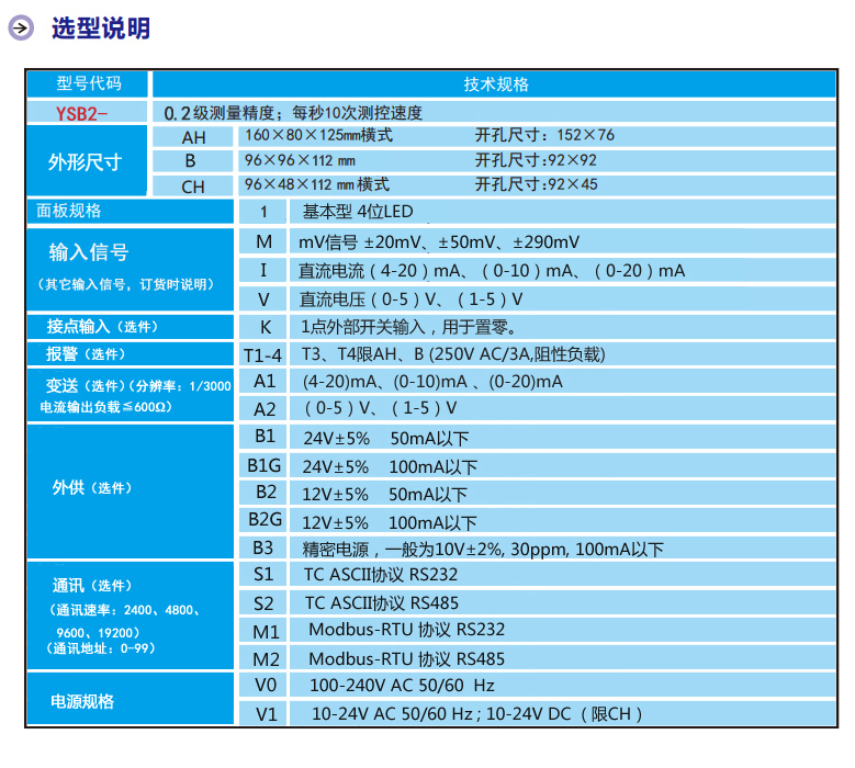 一、YSB2基本性能: