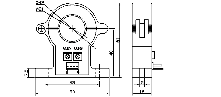 將0-400Aac交流電流變送輸出4V信號(hào),孔徑21mm,電源±12~±15V