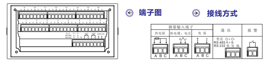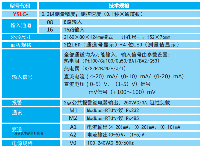 8路溫度巡檢儀:YSLC-16M2V0 16路溫度測量+報警功能 面板尺寸: 160×80×124 mm 橫式
